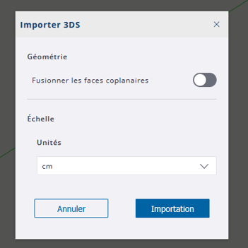 4. Veillez à bien sélectionner l'Unité en Centimètres , cliquez ensuite sur le bouton "Importation" pour valider :