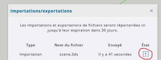 5. Attendez que SketchUp convertisse le fichier puis cliquez sur l'icône flèche :