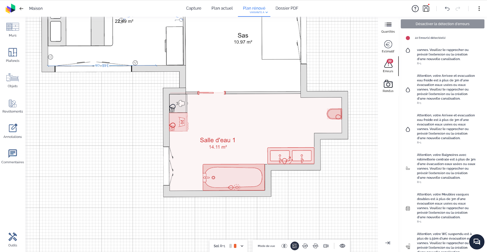 Pour la création du plan de plomberie vous pouvez vous appuyer sur notre assistant de conception : En savoir plus.